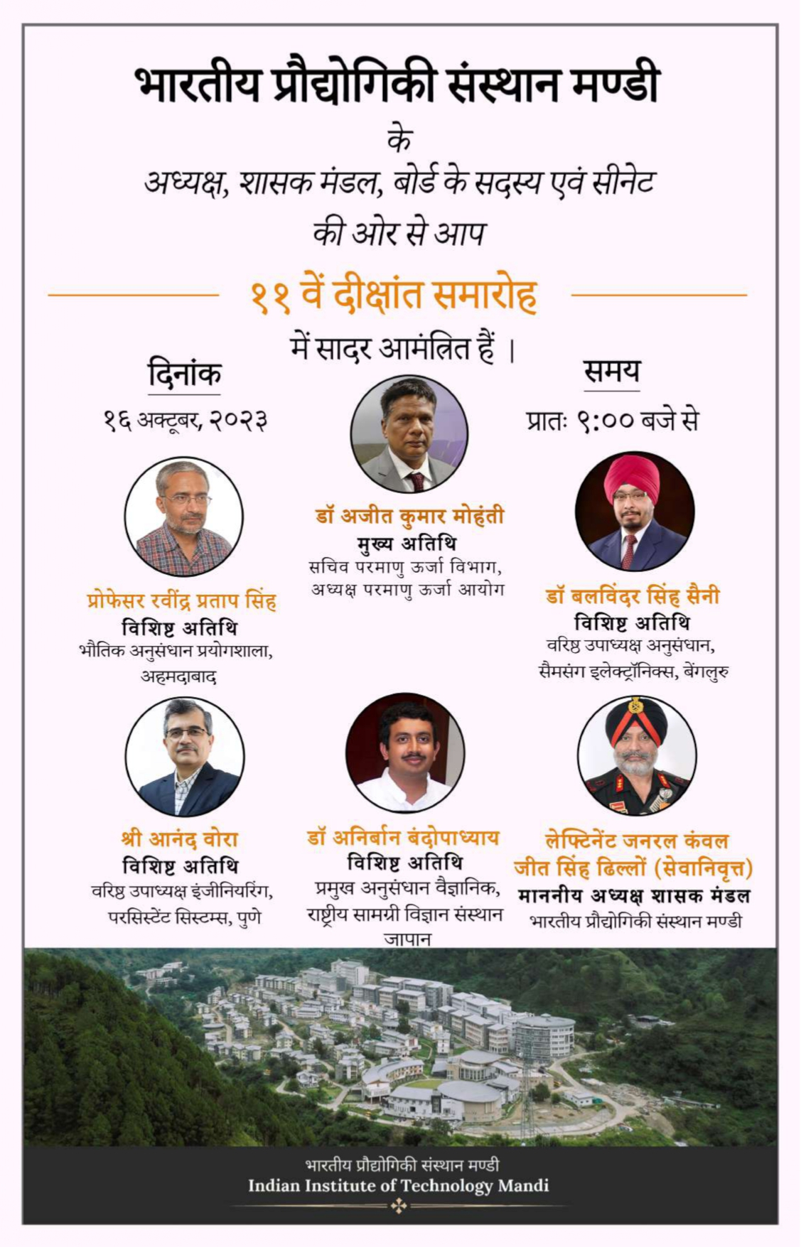 Date: 15 th October 2023, Venue: Auditorium, North Campus, IIT Mand